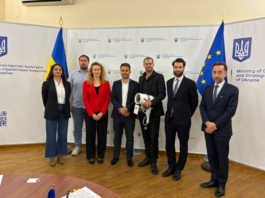 Dans le cadre d’une convention de mécénat, Gaël Pollès, notre directeur général et co-fondateur, a eu l’honneur de remettre à la Vice-ministre de la Culture Anastasiia Bondar et Ivan Verbytsky Artem Palienko, Directeur de l’Institut d’héritage culturelle, une box Timelapse Go prête à être installée. Celle-ci sera prochainement installée pour immortaliser la sauvegarde d’un monument inscrit au patrimoine mondial de l’Unesco.